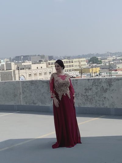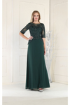 Details: Embellishment on demure bodice, 3/4 sleeves & upper back. Fabric: Mesh embroidered lace & pebble georgette. Looks amazing on a mother of groom, as an evening gown, plus size dress, or for any formal event.