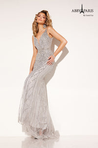 Abby Paris 90156 Beaded Sleeveless Illusion Tulle Gown