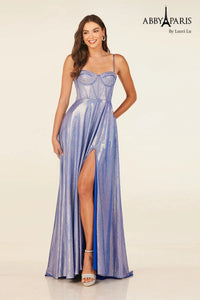Abby Paris 90350 Glitter Metallic A-line Slit Evening Gown