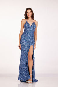 Abby Paris 92113 Sequin Fitted V-Neck Crisscross Slit Gown