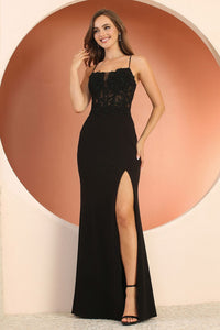 Prom Dresses Long Formal Fitted Lace Applique Prom Dress Black