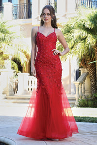 Prom Dresses Long Fitted Formal Beaded Floral Mermaid Prom Dress Red