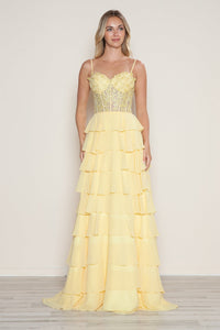 Poly USA 9698 Applique Chiffon A-line Tiered Gown