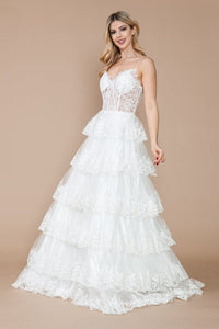 - Aplique Sleeveless Tiered Layered Gown by Poly USA 9402