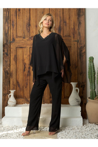 Pant Suit Long Formal Chiffon Pant Suit  Black