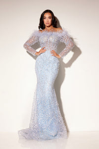 Feather Off Shoulder Mermaid Dress by Lucci Lu C8113 Sale price$1,044.00