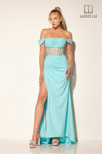 Glitter Sleeveless A-line Tiered Gown by Lucci Lu 1361 is available at Formal Dress Shops in the following colors: