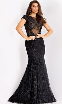 Jovani 37542 - Beaded Illusion Bodice Feather Gown