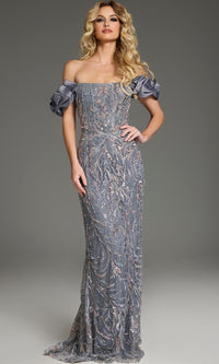 Jovani 38111 - Off Shoulder Bow Sleeve Fitted Gown Sale price$1,224.00