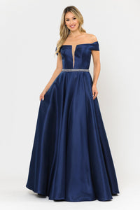 Poly USA 8680 Long Off Shoulder Illusion V-Neck Dress