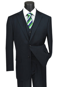 Mens Classic Fit Navy Blue Pinstripe Suit by Vinci Suits