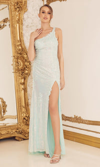 Nox Anabel D1158 Mint Green Long Lace Formal Dress One Shoulder