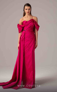 MNM Couture E0090 Pink Off-Shoulder Open Back Gown