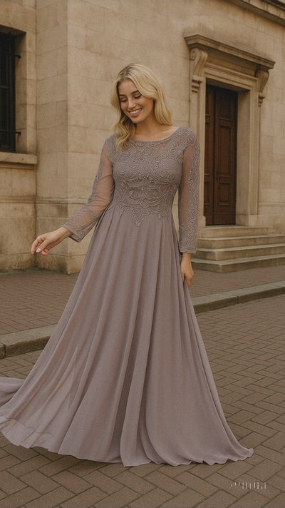 Mother of the Bride Dress 3/4 Long Sleeves Chiffon A-Line Evening Gown-New Collection