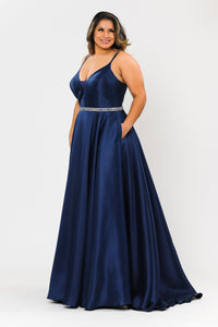 Poly USA W1106 Plus Size Long Deep V-Neck Mikado Dress
