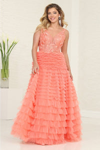 Royal Queen RQ8123 Floral Appliqué A-Line Tulle Prom Dress