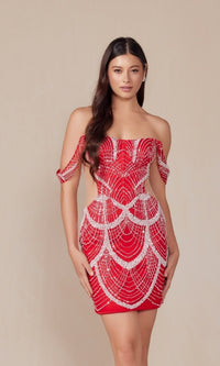 At Formal Dress Shops, discover the alluring Nox Anabel Q839 Dress, a stunning short homecoming dress designed to make a memorable statement with its bold and eye-catching style.