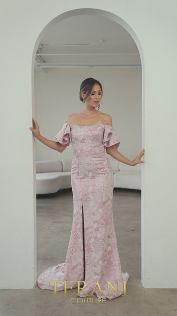 Terani Couture 242e3180 Crepe V Neck Long Sleeves Slim Evening Dress Sale price$787.00 Regular price$984.00