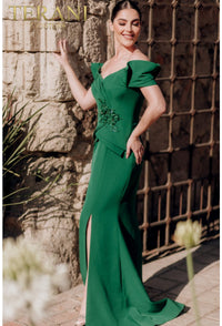 Radiate timeless elegance in the Terani Couture 232M1560 gown. Designed with an alluring off-shoulder neckline, this dress gracefully highlights your décolletage for a touch of refined femininity. The figure-hugging mermaid silhouette beautifully contours your curves, creating a stunning and sophisticated look. Ideal for weddings, proms, or any formal occasion, this gown promises a show-stopping entrance. Finished with a secure zipper and hook-and-eye closure for all-night comfort, this exquisite piece lets you embrace your inner goddess with confidence.