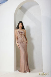 Terani Couture 241p2125 Strapless Bodycon Nude Long Prom Dress