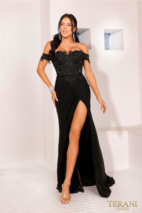 Terani Couture 241p2238 Off Shoulder Bodycon Black Long Prom Dress