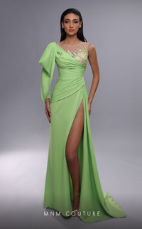 MNM Couture K4086 Orange Gown with Draped Puff Sleeves & High Slit Sale price$1,142.00