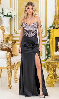 Dancing Queen 4517 – Off-Shoulder Beaded Sheath Evening Gown
