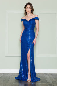 Poly USA 8722 Fitted Off Shoulder Sequin Gown