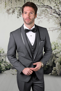 Men's Charcoal Grey Vested Satin-Trim Shawl Tuxedo for Prom & Weddings