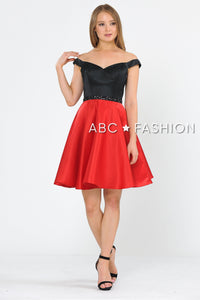 Poly USA 8532 Two-Tone Short Off the Shoulder Dress