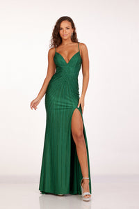 The Abby Paris 90213 Beaded Strappy Back Slit Evening Gown is designed to make an entrance, plain and simple. Understated shimmer, a sharp line up, and just enough attitude - it’s all there.