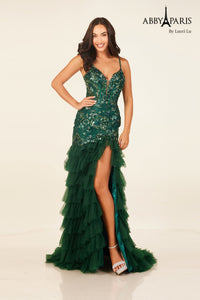 Abby Paris 90330 Sleeveless Tiered Slit Evening Gown