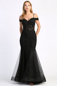 Adora Design 3005 Off Shoulder Beaded Lace Corset Prom Gown
