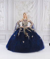 Applique Bell Sleeve Ball Gown by Bella Princess PQ1020