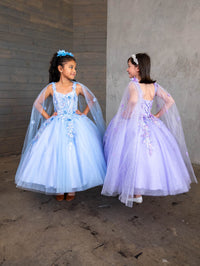 Girls Sleeveless Cape Sleeve Gown by Calla SCK306