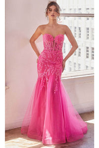 El vestido de noche Ladivine CB139 promete una entrada espectacular con su escote corazón sin tirantes y su corpiño tipo corsé ilusión, con una transparencia que le da un toque más atractivo. Su diseño de lentejuelas deslumbra, mientras que la falda sirena con una amplia cola le aporta un toque dramático. Su espalda semiabierta con cierre de cremallera garantiza un look elegante y refinado. Disponible en rosa fucsia, lavanda, azul océano y azul real, este vestido irradia glamour y elegancia, convirtiéndote en el centro de atención en cualquier evento.