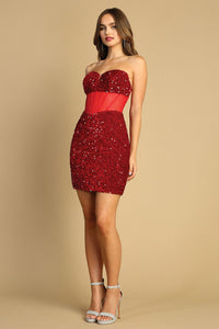 Adora Design 1049 Strapless Short Sequin Fitted Cocktail Dress