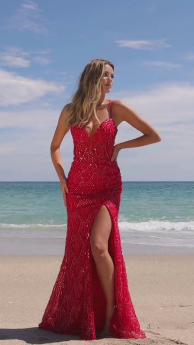 Prepárate para acaparar todas las miradas con este radiante vestido de fiesta con cuentas C1616 que brilla con cada movimiento. El corpiño transparente tipo corsé, con espalda con cordones, añade un toque de seducción a este glamuroso diseño. Brillantes cuentas caen en cascada desde el pronunciado escote en V hasta el bajo, mientras que la silueta sirena que se ciñe a las curvas termina con una sensual abertura lateral. Ya sea para una fiesta de graduación, una gala de etiqueta o un evento de alfombra roja, este deslumbrante vestido formal garantiza una entrada triunfal.