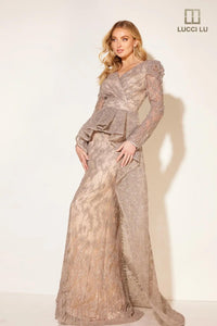 Fitted Long Sleeve Peplum Gown by Lucci Lu C8016 doesn’t just turn heads - it invites a second glance. That luxe silhouette says you’re headed somewhere where details matter, and honestly? Lucci Lu just gets it.