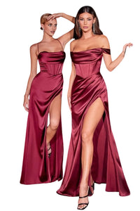 Formal Simple Slit Bridesmaids Evening Gown 2025 Elegant Dress - BURGUNDY / 2 - Dress