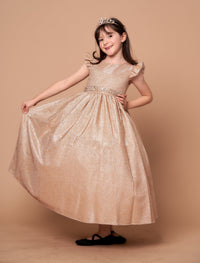 Girls Metallic Glitter Short Sleeve Gown by Calla D828