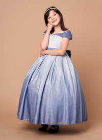 Girls Off-Shoulder Ombre Glitter Gown by Calla D823 features shimmering ombre glitter fabric and smooth inner lining, designed for freedom of movement and gentle support. Available in sizes 2, 4, 6, 8, 10, 12.