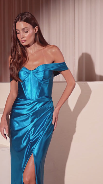 Ladivine CD370 Satin Off-Shoulder Fitted Gown