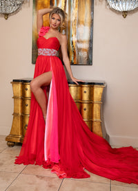 Rachel Allan 70827 One Shoulder A-line Slit Gown