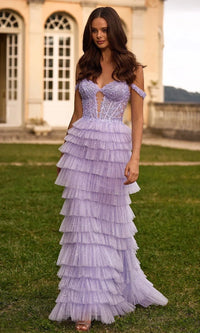 The Sherri Hill 57073 - Off-Shoulder Ruffle Tulle Dress is that rare piece–soft, dramatic, and unmistakably Sherri Hill. Walk into any room and, honestly, the dress does most of the talking.