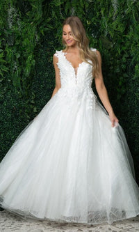 Acapara todas las miradas con este impresionante vestido de novia blanco estilo gala, una combinación perfecta de elegancia y precio. Ideal para bodas, graduaciones, galas y eventos formales, este vestido largo en forma de A luce apliques florales que caen en cascada desde el escote en V hasta la espalda y las caderas. Una capa transparente aporta movimiento y se desliza con gracia hacia una silueta amplia. Totalmente forrado para mayor comodidad, este asequible y sofisticado vestido blanco promete un look espectacular y un sinfín de cumplidos.