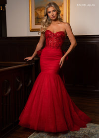 Make a statement with the Rachel Allan 70726 Dress at FormalDressShops - buy online today! This breathtaking appliqué strapless mermaid dress is designed to mesmerize, featuring a structured bodice adorned with sequin appliqué and delicate beading.