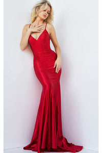 Vestido ajustado sin mangas de satén con cuentas de Jovani 23010Precio de oferta$490.00