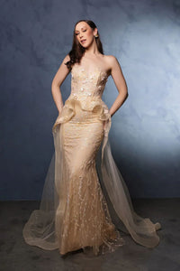Amelia Couture 3013 Strapless Lycra Side Cape Long Evening Prom Gown