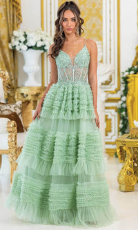 Dancing Queen 4476 – Beaded Lace Applique Tiered Ballgown with Deep V-NeckPrecio de oferta$191.00